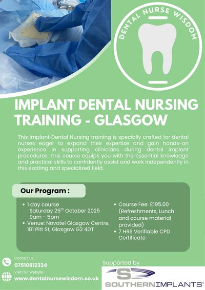 Ready to take your dental nursing career to the next level? Book your place on our Implant Dental Nursing training today and gain the specialist skills and confidence to assist in implant procedures. Don’t miss out—spaces are limited, so secure your spot now!